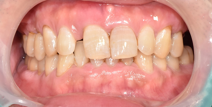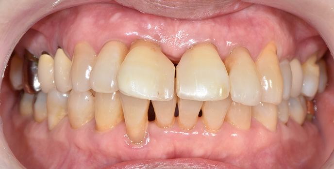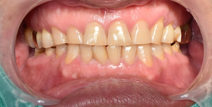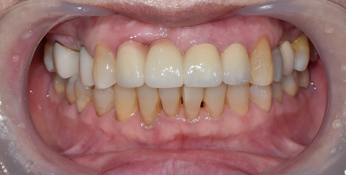 60대 남성 | 교모 | 전악 크라운 수복 | 치료기간 3개월