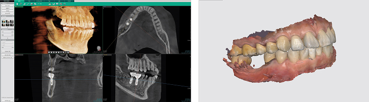임플란트 시술 전 구강스캔데이터와 3차원 CT영상을 이용해 입 안의 입체적 환경을 재현해 치아와 잇몸뼈, 신경의 위치까지 분석하여