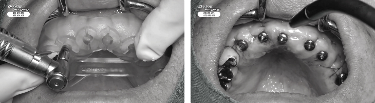 맞춤 수술 가이드를 사용해 계획대로 식립합니다.