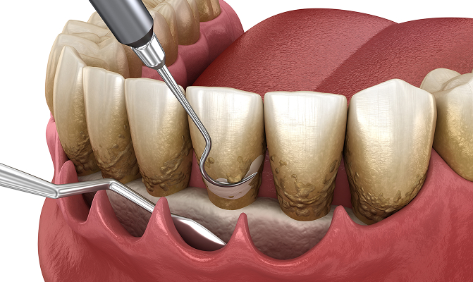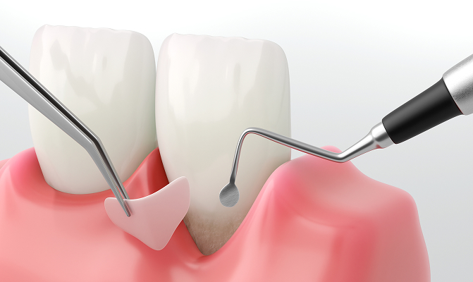 잇몸 안쪽까지 염증조직과 치석이 퍼진 경우, 스케일링 치료 후 치근활택술과