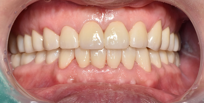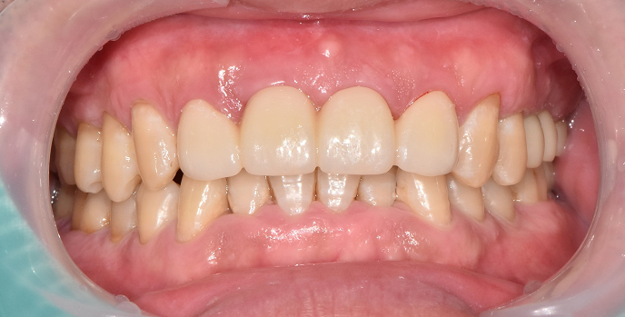 60대 남성 | 교모 | 전악 크라운 수복 | 치료기간 3개월